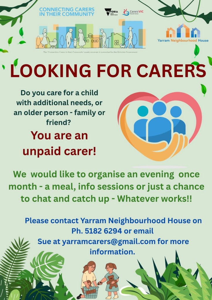 Come along for light refreshments, have a chat, get to know other carers and help plan what and when future evening sessions will be held!